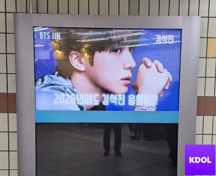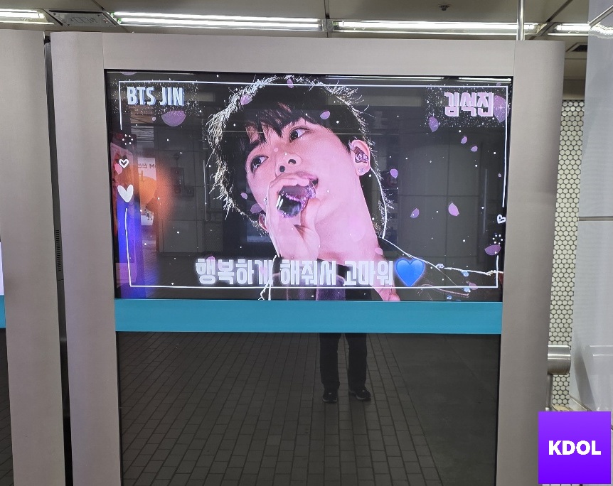 KDOL 12월 월간랭킹 결과에 따른 진 님의 광고는 2월 17일까지 강남역과 압구정역에서 만나보실 수 있습니다!