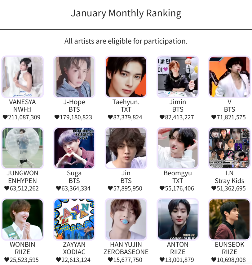 [January Monthly Ranking Results]