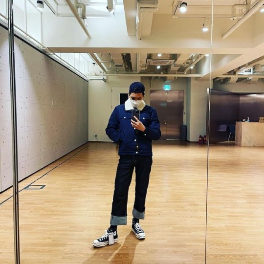 The released photo is a full-length mirror selfie taken by Kai in the practice room. Wearing a mask and a cap, Kai showed off his small face and long legs, showing off his superior proportions. In particular, neat outfits such as boyfriend looks caught the eyes of fans.