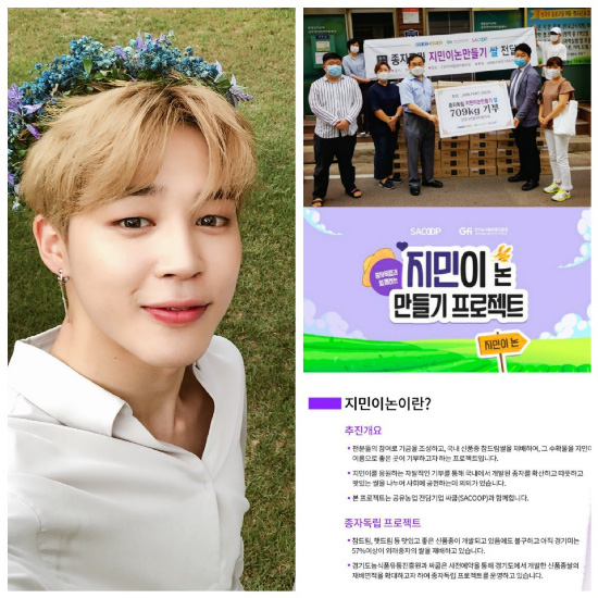 The 'Jimin's Rice Field' project promoted in April raises funds through voluntary participation of fans, and grows dream rice, developed by the Gyeonggi-do Agricultural Technology Institute. This project started to donate the harvested crops to the place where they needed it in the name of Jimin BTS. This is the first case of a domestic star.